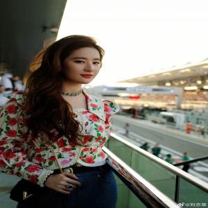 6刘亦菲观看阿布扎比F1大奖赛 身在赛车场的刘亦菲依旧美到发光