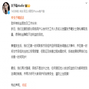 《我的主场》节目组回应泄露张予曦隐私博取流量:已第一时间报警并联合艺人工作室采取相应措施