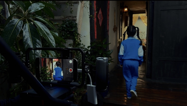 3分08s的幕后花絮,我们可以看到,这次《小蒜头》的拍摄并没有使用太多专业设备,更多的是手持,其他像兔笼、SSD等都是消费级的手机配件,特别专业的影视设备,只有影视级电动滑轨这一个设备,只为了拍摄夜晚小薇对着镜头向前走动变身的画面。