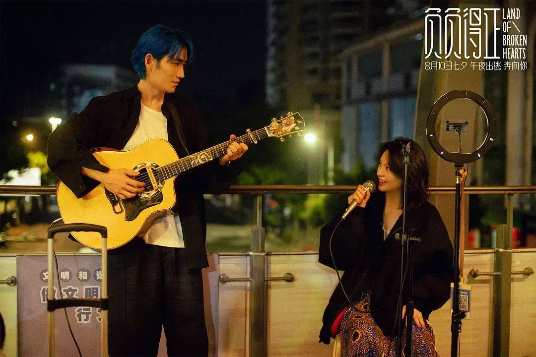 首先是视觉。《负负得正》走的是世界独立电影里常用的“仿胶片”路线,画面质感轻柔迷幻;朱一龙的蓝发造型,邱天宛如《重庆森林》中王菲、《偷心》中娜塔莉·波特曼附体的“索女”装扮,两人间飘忽、朦胧的亲密场景,以及无处不在的细小视觉元素,更是把电影的视觉观感构建成了统一的电波系风格,随便一截就是一张能发Ins的“文艺照”。
