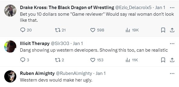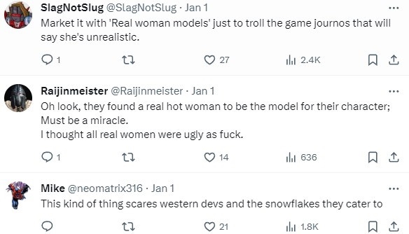 “欧美开发者会让她变得丑陋”“他们找了一位真实的性感女人来做他们角色的模特,真是个奇迹。我还以为所有现实女人都丑爆了。”