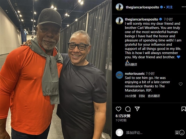 “卡尔·韦瑟斯拥有诸多天赋,嗓音、身形、存在感、运动天赋,以及最重要的,他的内心与灵魂……损失太大了,很庆幸自己的人生与他有交集,继续战斗吧,阿波罗。”