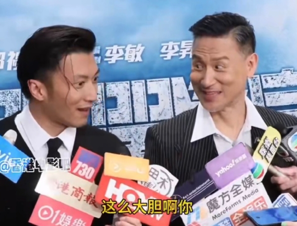 接着记者说王菲愈来愈像谢霆锋,他回答不知道,但又被问听到这个说法开不开心,谢霆锋先是瞪大眼睛停了一会儿,接着说「这样就开心啦? 挺好的,开心啰。」 结果一旁的张学友忍不住笑出来,吃瓜吃得很开心。
