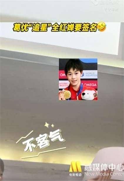 原来在电影结束后,全红婵被主创团队邀请到了后台,葛大爷化身其“小迷弟”要了张签名!